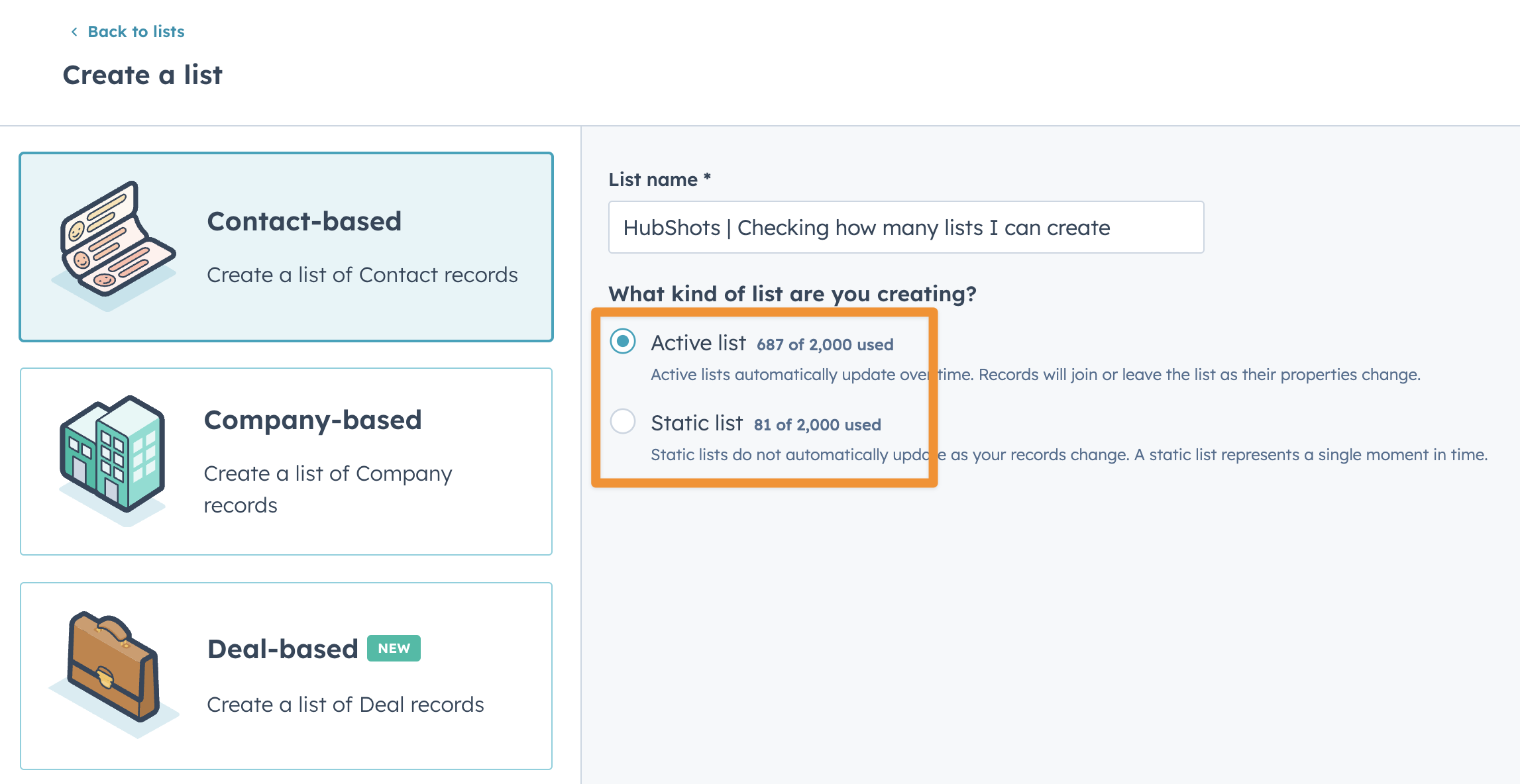 To get started, use the usual approach for creating lists, you’ll see a new option to create Deal based lists: